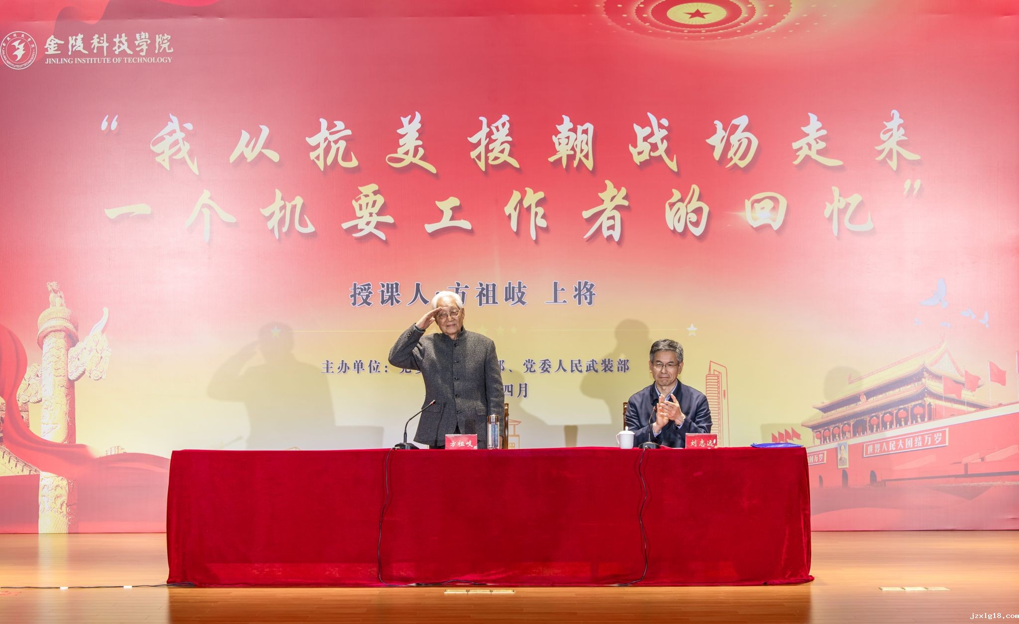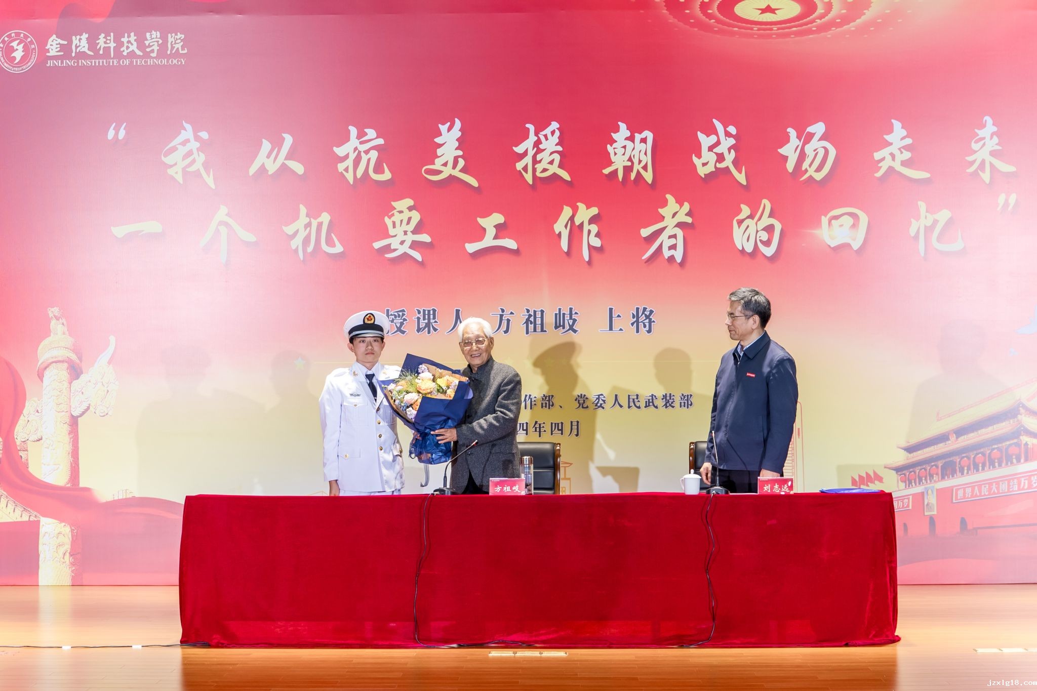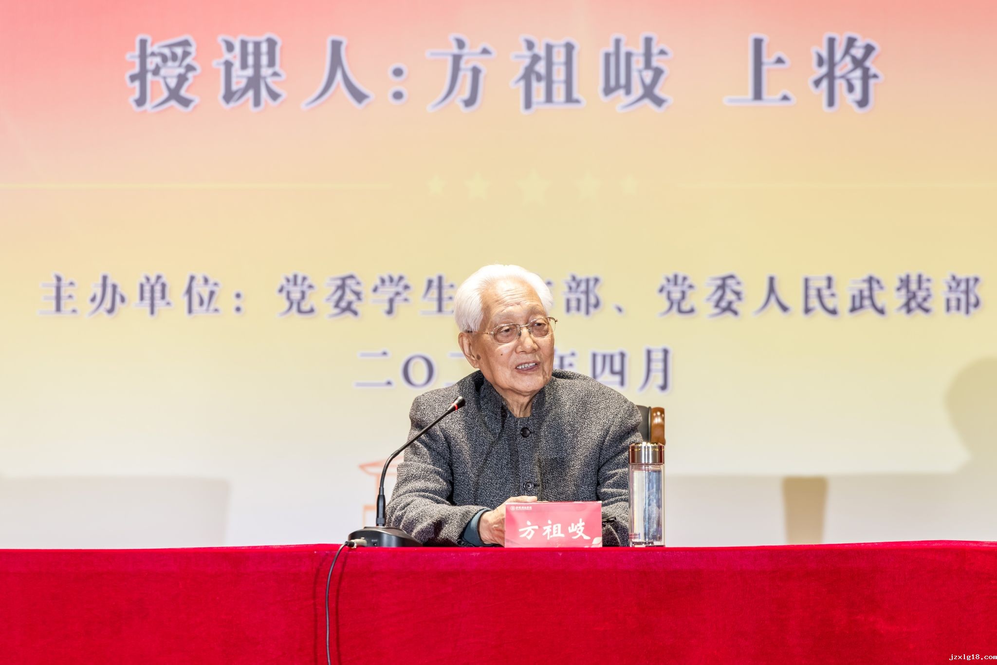 4月17日,原中国人民解放军高级将领方祖岐上将来我校交流并为师生讲授“信仰公开课”。校党委书记刘志远、校长刘永彪出席活动,党委办公室、党委组织部、党委宣传部、校长办公室、党委学生工作部、党委人民武装部主要负责人,以及师生代表等千余人参加活动。