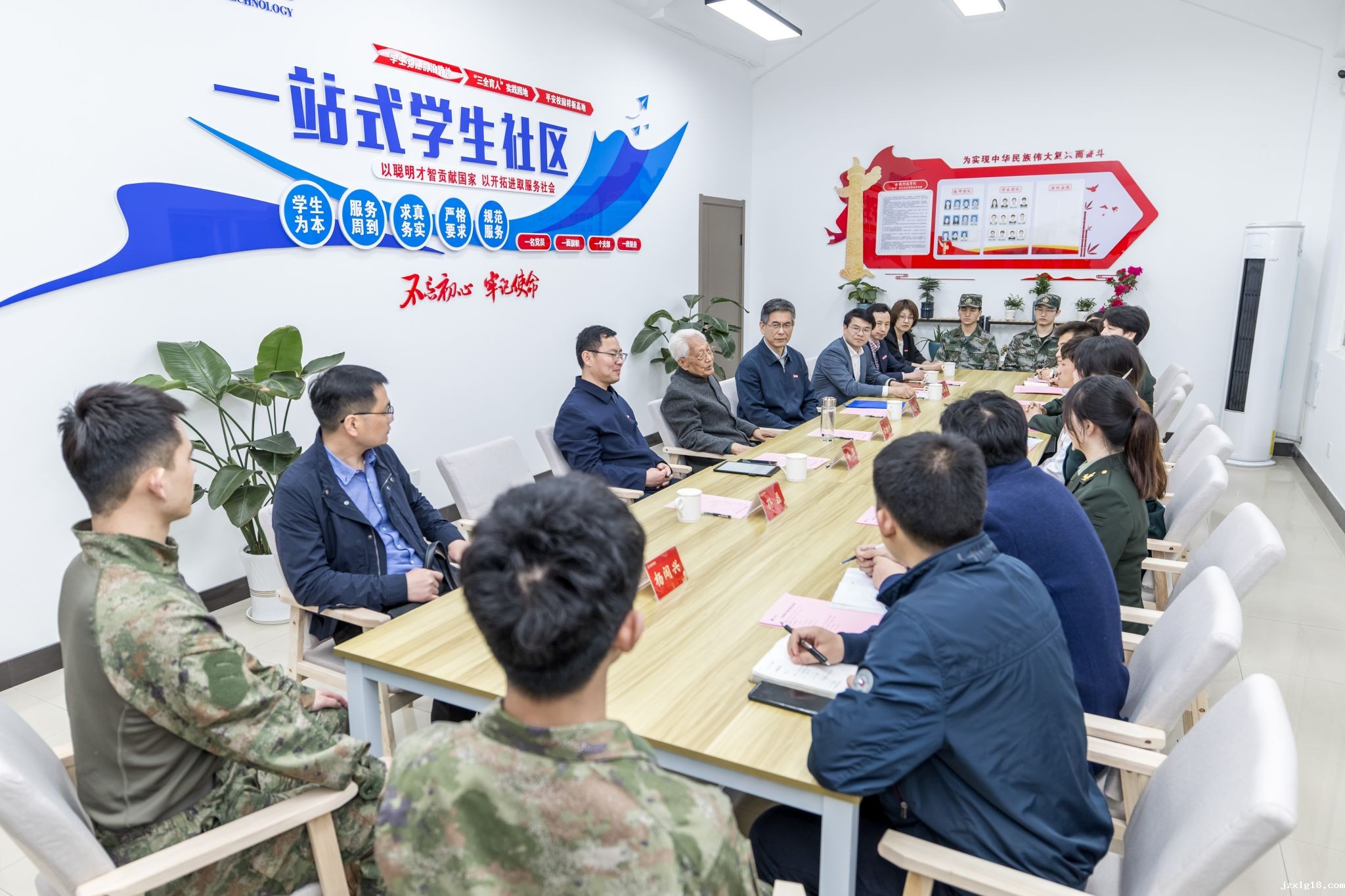 最后,方祖岐将军在学校“一站式”学生社区与我校军事课教师代表及退役大学生代表进行了面对面交流座谈。他勉励师生要敢于挑战自我,挑战极限,努力提高自我,要把抗美援朝精神融入国防教育,继承和发扬我军优良传统,为强国兴军,为中华民族伟大复兴贡献力量。